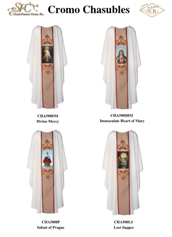 Cromo Chasubles CHA500DM CHA500IHM Divine Mercy Immaculate Heart of Mary CHA500IP CHA500LS Infant of Prague Last Supper
