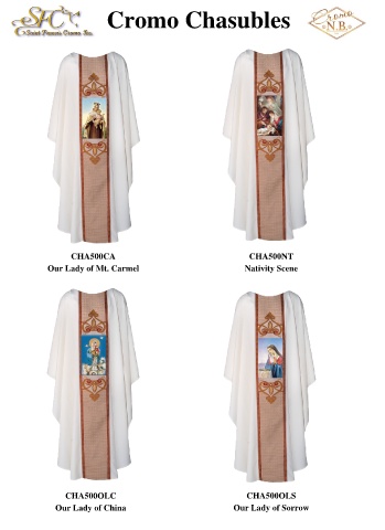 Cromo Chasubles CHA500CA CHA500NT Our Lady of Mt. Carmel Nativity Scene CHA500OLC CHA500OLS Our Lady of China Our Lady of Sorrow